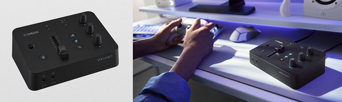 Rezultatul, noul mixer de jocuri de streaming live ZG02 — optimizat pentru jocuri multiplayer online și o gamă mai largă de stiluri de joc, cu un accent mai mare pe funcțiile care îmbunătățesc comunicarea și jocul general cu alți jucători și coechipieri decât predecesorul său ZG01. Noul ZG02 este, de asemenea, mai compact ca dimensiune și chiar mai accesibil ca preț, menținând designul intuitiv, caracteristicile cuprinzătoare și tehnologia unică de procesare a vocii Yamaha. În plus, aplicația dedicată „ZG Controller” la distanță oferă utilizatorilor un control mai precis al funcțiilor relevante și oferă, de asemenea, o funcție de legătură pentru reglarea esențială a volumului în timp real.