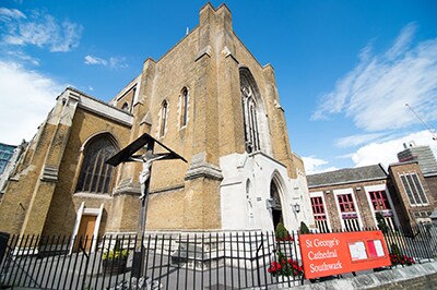 The Metropolitan Cathedral Church of St George (to give it its full name) was built in 1848. Badly damaged during the Blitz of 1941, the following decade it was restored and reconsecrated. Its architecture is typical of what many consider ‘a cathedral’ to be - high, vaulted ceilings, numerous pillars, large leaded windows and expanses of smooth stonework, all of which present challenges to effective sound reinforcement.