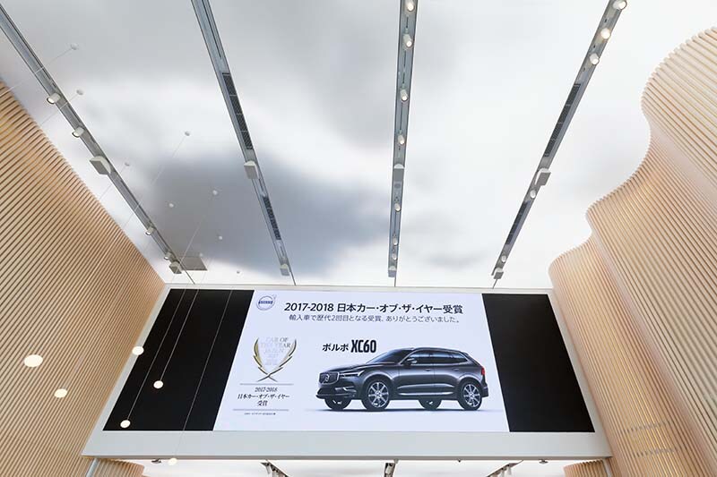 Our company did the visual and audio installation for Volvo Studio Aoyama. Planning and design were all done at the Volvo head office. It was our job to install the video and audio system based on the plans provided by Volvo.