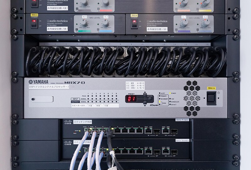 The fact that it is state-of-the-art technology and provides high-performance digital audio transmission was the main reason. We had used EtherSound in the past, and initially considered it for this system, but Dante was chosen for its high stability, its compatibility with the low cost of devices, and most importantly its provision of a secondary redundant network that doesn’t impact other features or performance. We actually had a problem with the infrastructure during operation, but the secondary network kept system running normally. The ability to easily set up redundant primary and secondary networks that minimize or eliminate downtime if a problem occurs is one of Dante’s main advantages.