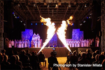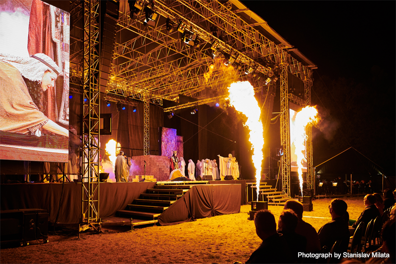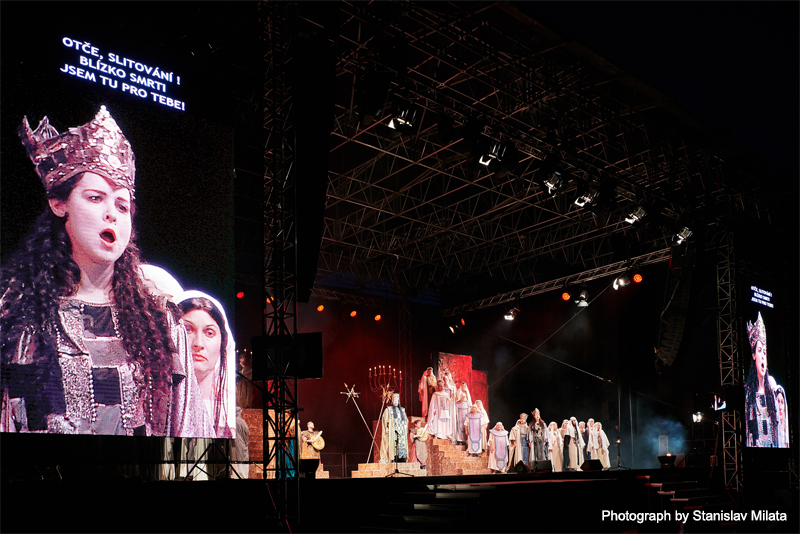 Primul eveniment unde a folosit Jiri sistemul a fost o producție în aer liber a operei Nabucco de Verdi în Praga, acompaniată de o orchestră filarmonică live.