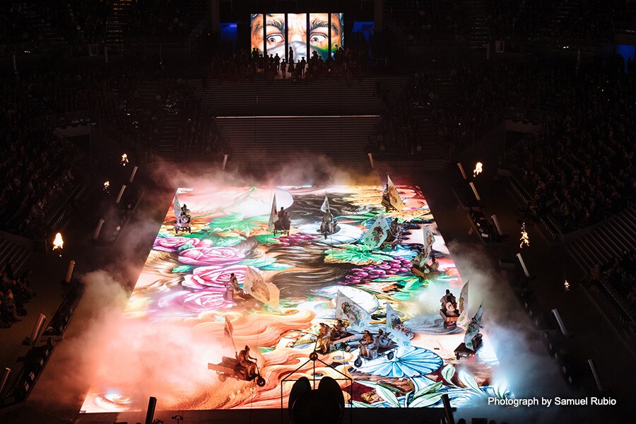 - Cinci scene într-un loc cu 20.000 de locuri, 4.000 m2, arenă temporară înaltă de 30m, realizată din 700 de tone de oțel.