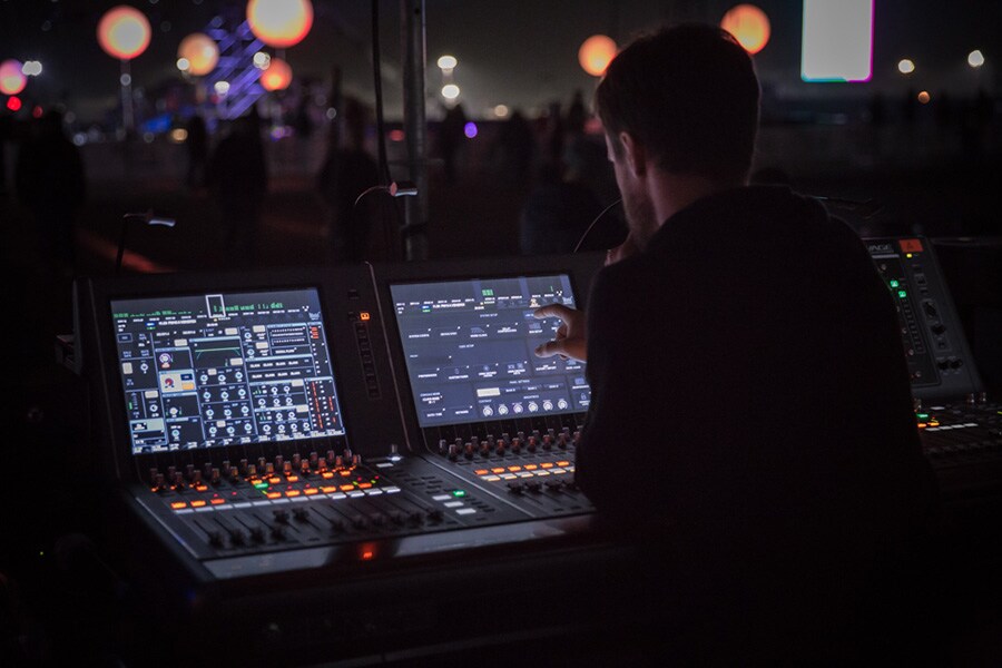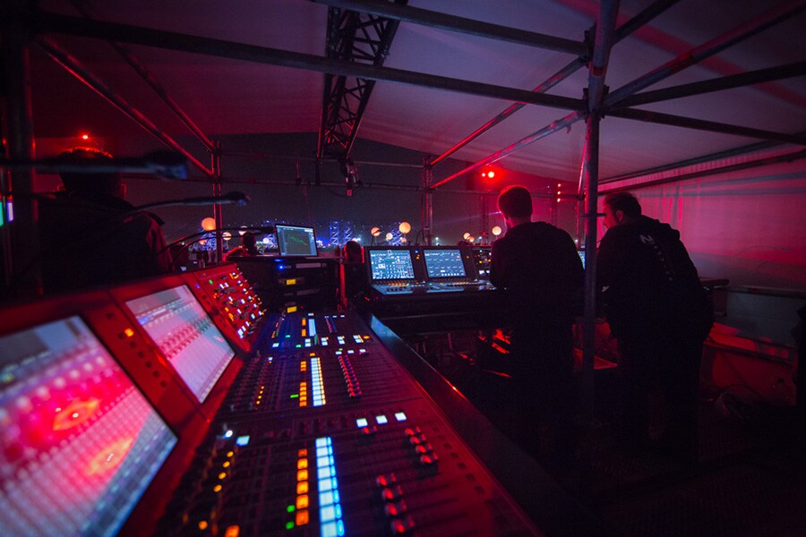 The event’s biggest digital mixing system yet comprised a RIVAGE PM10 with CS-R10 and CS-R10-S control surfaces to manage the Front of House mix. A RIVAGE PM7 system was used for the monitor mixes, with five RPio622 I/O racks providing 304 inputs and 96 outputs. The system was based on a TWINLANe network, with Dante distributing the audio to the PA amplifiers and to multitrack recording via two RMio64-D Dante/MADI I/O racks. A QL1 digital mixer was also provided for the conductor, who was busy keeping all the musicians in time.