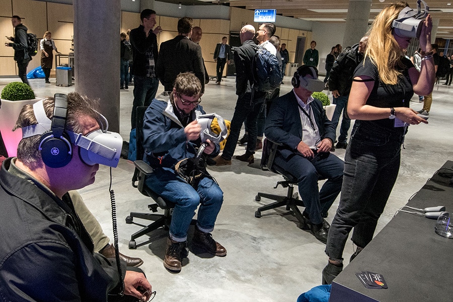 In between the sessions, guests were invited to enjoy a fully-immersive, 3D virtual reality tram ride through Prague. This was recorded using Yamaha's ViReal 64-channel spherical microphone array, the sound being played back through Yamaha headphones accompanying video on Oculus Go headsets.