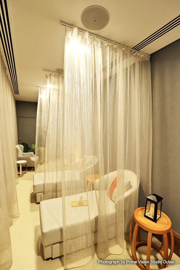 In the spa, a total of 10 VXC8 and five VXC6 ceiling speakers were installed in the treatment rooms, changing rooms, reception and corridors, with DCP4V4S and DCP1V4S control panels. More robust audio levels were needed in the gym, so here four VXS8 surface mount speakers and two DXS15mkII 15” powered subwoofers were installed, with another DCP4V4S control panel. Three more XMV8140 and 4280 amplifiers were used to drive the VXC and VXS series speakers, with system management by an MTX3 matrix processor. A third party music player and radio tuner was chosen to supply music to the MTX3.
