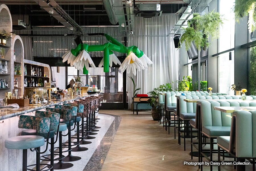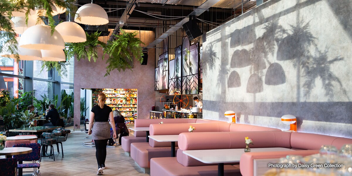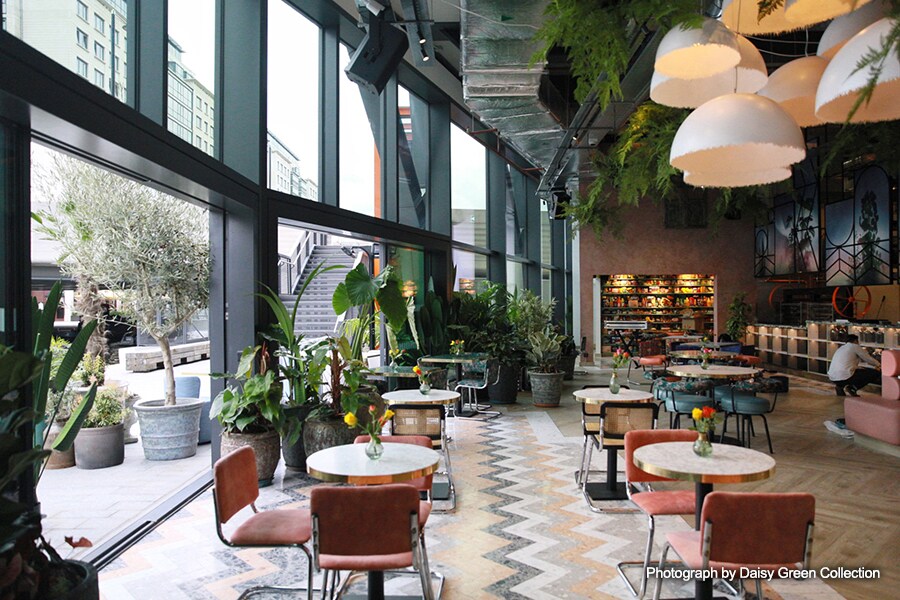 Fondată de Prue Freeman și Tom Onions în 2012, Daisy | Green a dezvoltat o serie atractivă de spații în toată Londra, fiecare proiectat individual pentru a face din acesta o experiență unică pentru clienți. Finalizat în 2019, cele 16 etaje ale clădirii Brunel și 22.610 ㎡ de spații de birouri i-au dat lui Prue și Tom posibilitatea de a înființa un restaurant mai mare și permanent, aproape de Darcie & May | Green Restaurant, o pereche de bărci înguste transformate care plutesc pe canalul adiacent Grand Union.
