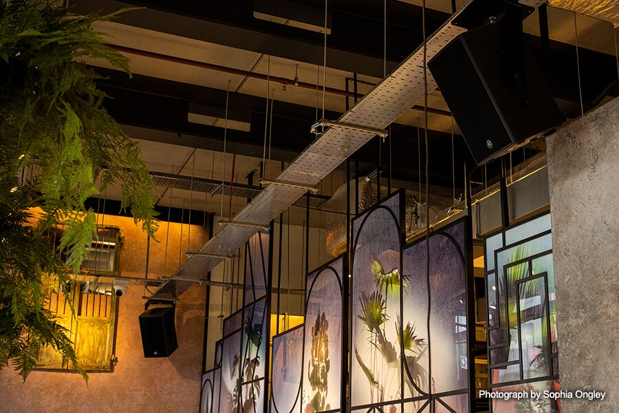 Restaurantul acoperă aproximativ 750 ㎡ și, cu difuzoarele atârnate la 3,5 m deasupra podelei, Peter avea nevoie de difuzoare care să ofere un sunet puternic, dar de înaltă calitate, controlabil. „Multe lucruri erau mult mai mari decât o instalație obișnuită de restaurant”, spune el. „În multe privințe, a arătat mai mult ca o instalare într-un club de noapte foarte mare.”