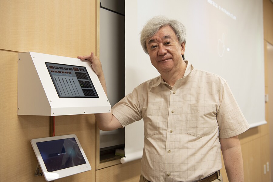 Dr. Sunahara: Inițial, sălile de clasă KMD erau echipate cu echipamente PA. De la începutul KMD, toate clasele au fost înregistrate și arhivate. Cu toate acestea, este înregistrată doar vocea profesorului care ține microfonul și nu au fost înregistrate niciuna dintre întrebările elevilor sau comentariile lor din timpul discuțiilor. În încercarea de a remedia această situație cumva, am implementat o varietate de soluții și am combinat diferite tipuri de echipamente. Operațiunile au fost însă complicate și a fost imposibil de construit un sistem care să poată fi gestionat de toți profesorii. Aceasta a fost o provocare majoră cu care ne-am confruntat înainte de a instala ADECIA.