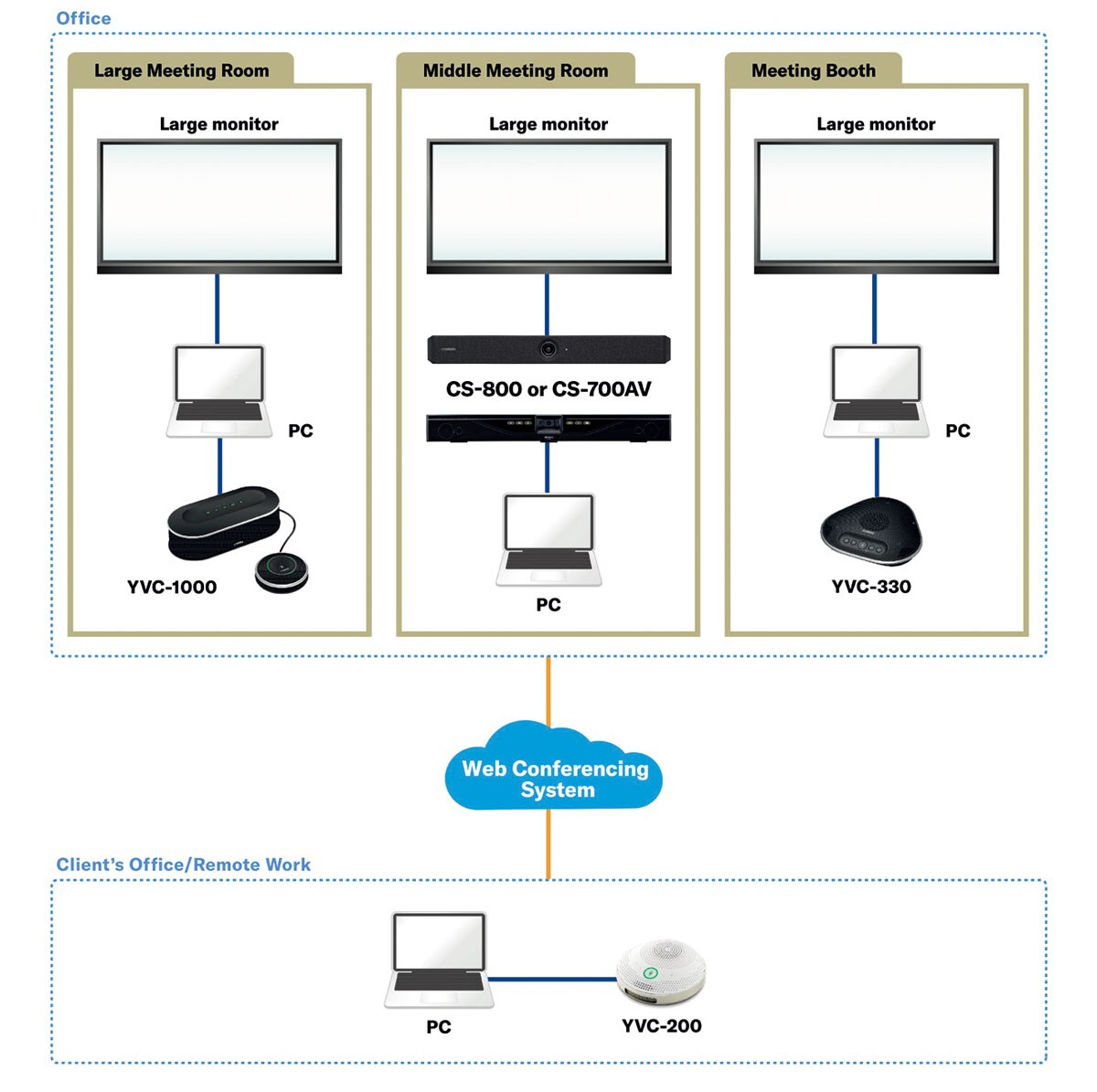 De la pandemia de Covid-19, munca hibridă a personalului de la sediul Kagome Co., Ltd a devenit ceva obișnuit, iar compania a crescut numărul de spații de întâlnire care sprijină videoconferința. Utilizând în prezent 38 de sisteme de colaborare cu sunet video CS-700, 10 YVC-1000, 61 YVC-300, 13 YVC-330 și 18 YVC-200 pentru medii de lucru hibride, este important ca sistemele să ofere un flux consistent și fiabil atunci când oamenii le folosesc pentru întâlniri într-o varietate de situații.