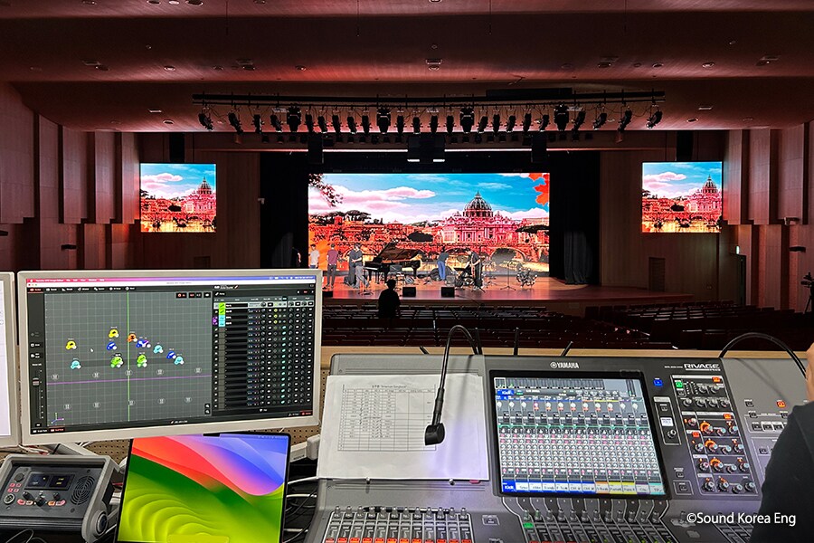 “By placing microphones in both the stage space and the audience space, we increased the number of independent channels. This ensured sufficient acoustic energy to generate optimal reverberation for acoustic music performances,” says Geehyoung Kim.