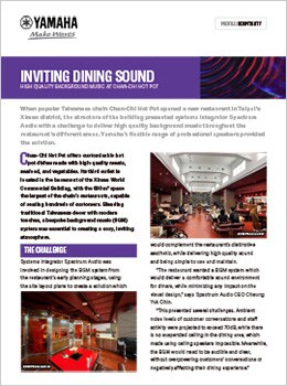 When popular Taiwanese chain Chan-Chi Hot Pot opened a new restaurant in Taipei’s Ximen district, the structure of the building presented systems integrator Spectrum Audio with a challenge to deliver high quality background music throughout the restaurant’s different areas. Yamaha’s flexible range of professional speakers provided the solution.