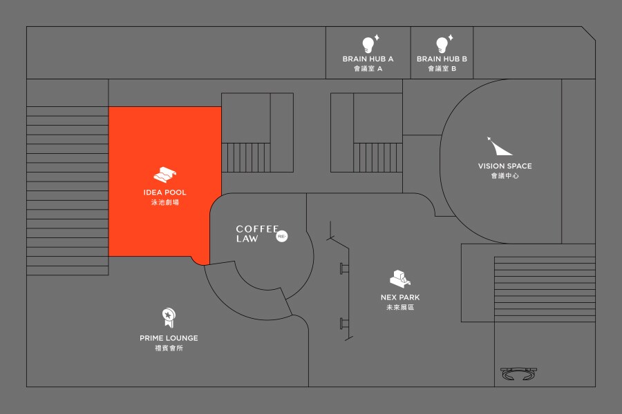 IDEA POOL, formerly the fitness club swimming pool, retains its original pool and staircase structure. It has been transformed into a flexible and versatile micro theater, which can be used as a stage for exhibitions, lectures, talks and immersive performances.
