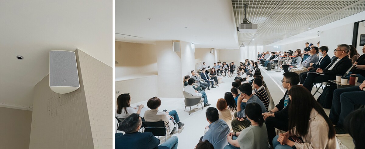 Covering a variety of functional areas, from multi-purpose exhibition and conference rooms to open exhibition spaces and cafes, BEONE featured vastly different audio requirements for each space: