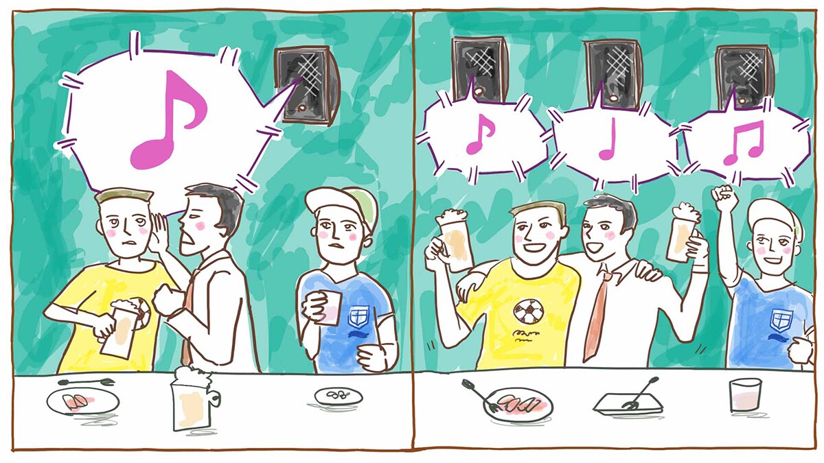 To determine the number of speakers needed, first decide the optimal speaker model based on the music volume you anticipate requiring, how busy the store is, and other relevant factors. Then determine the number of units required to deliver music to the target area, based on the capabilities of the selected model and the size of the target area.