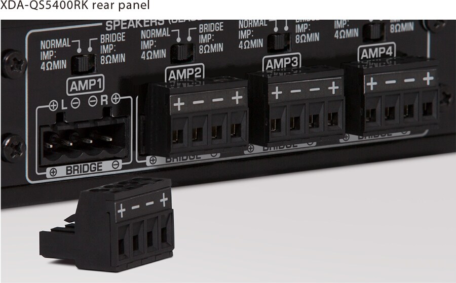 No ordinary amp, the QS employs ultra-efficient ICEpower integrated circuits to deliver eight channels of pristine, musically-dynamic digital amplification at 50 watts/channel (8 ohms) with an outstanding 10 Hz to 22 kHz (+0/-3 dB) frequency response and 106 dB signal-to-noise ratio. It is 4 ohm capable at 100 watts/channel and bridgeable to 200 watts/channel (8 ohms).