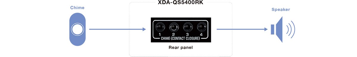 The Chime contact closure inputs let you generate a doorbell chime or, for example, an alert for a gate from a common switch. Output zones and chime sound selection can be configured using the Web Setup.