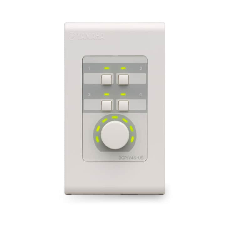 1 Volume & 4 Switch equipped Wall Mount Control panel for DME7, MTX/MRX Series and MA/PA series. Easy connection by CAT5 carrying RS485 + power. Maximum 8 DCPs can be connected to 1 DME7 and MTX/MRX Series. 1 DCP1V4S can be connected to 1 MA2030a/MA2030. Maximum 2 DCPs can be connected to 1 MA2120 or PA2120.