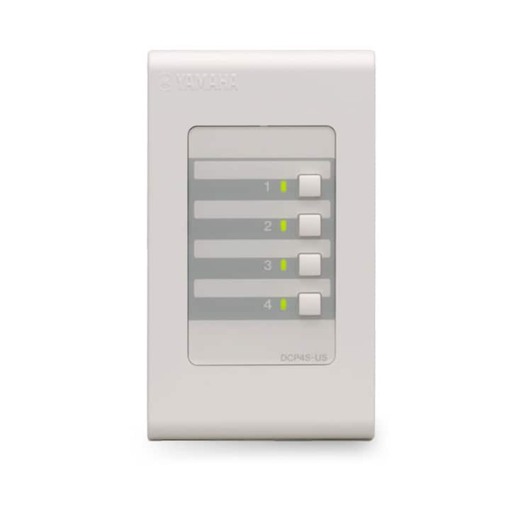 4 Switch equipped Wall Mount Control panel for DME7, MTX/MRX Series and MA/PA series. Easy connection by CAT5 carrying RS485 + power. Maximum 8 DCPs can be connected to 1 DME7 and MTX/MRX Series. Maximum 2 DCPs can be connected to 1 MA2120 or PA2120.