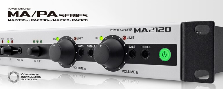 The MA and PA series power amplifiers offer powerful features in compact, durable metal chassis. They are designed for easy, intuitive operation that makes specialized training or audio experience unnecessary. For example, the output volume knob has been made the focus of the front panel design, enhancing day-to-day operability while minimizing the possibility of error. No special software, programming or equipment is required for installation or setup. Anyone can quickly and easily set up a system that will deliver the best possible sound for a wide range of applications.