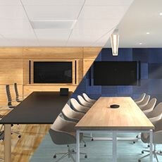 The VXL1B-16P and VXL1W-16P support the "Dante" audio network, and use a slim line-array configuration, making them an easy fit perfectly for conference rooms (in the size range of 12m × 10m) that demand vocal clarity while imposing numerous constraints on space, and require both functionality and a sense of design. With audio distributed via a Dante network and PoE power* supplied from a PoE compliant L2 switch, the speaker system can be constructed as a network, allowing existing IT infrastructure to be effectively utilized. Simple wiring via LAN cables, easy installation, and no need for a power amp contribute to the flexibility of installation, allowing you to construct an elegant sound system that will not interfere with the design of the conference room.