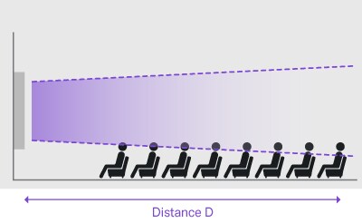 Vertically coupled line array speakers easily provide full, uniform coverage in a sloping lecture hall where a single speaker would not be sufficient.