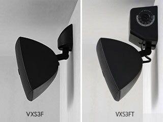 The VXS3F and VXS3FT are designed to deliver the same outstanding performance in different installed settings*. The VXS3F is ideal for smaller installations such as retail stores where just a few speakers will be used to cover the service area. Wide dispersion allows effective coverage with a minimum number of speakers. The VXS3FT is preferred when a large number of speakers will be required to cover an expansive or complex area. Connection taps allow volume (output watts) to be adjusted after installation for added flexibility. * The VXS3F and VXS3FT feature the same enclosure, but are supplied with different mounting brackets.