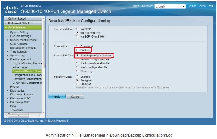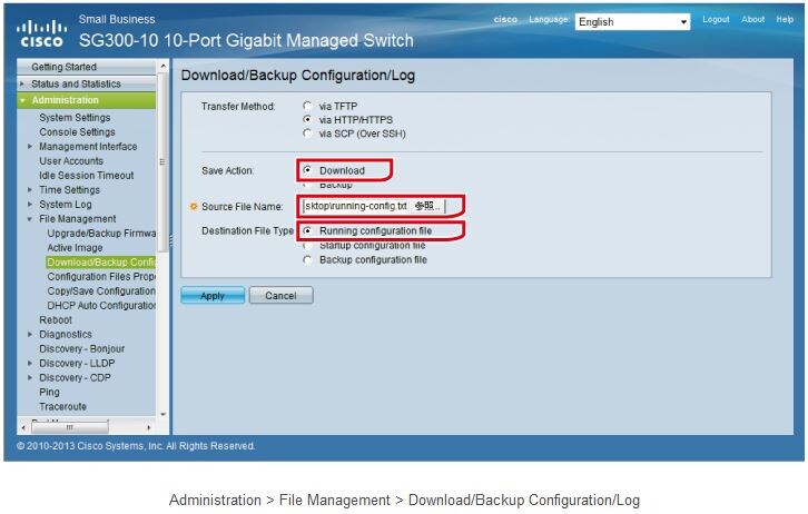 First, in the following page, you can back up the settings of a switch that you have finished configuring by saving them as a text file on your PC.