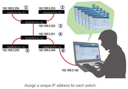 Finally, we recommend that you change the switch IP address. By assigning different IP addresses, such as 192.168.0.254 and 192.168.0.253, to each switch (while keeping the network address the same), you can enable a PC connected to VLAN 1 to monitor and configure either of the switches. For information about how to change the IP address of a switch, see “Preparing to Configure a Network Switch."