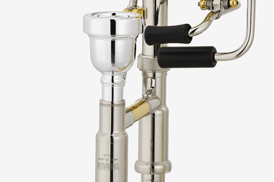The first detachable hand rest ever to be provided in a custom bass trombone significantly reduces strain on the player’s hand fingers. This allows a steadier hold on the instrument, so the player can concentrate more fully on the music.