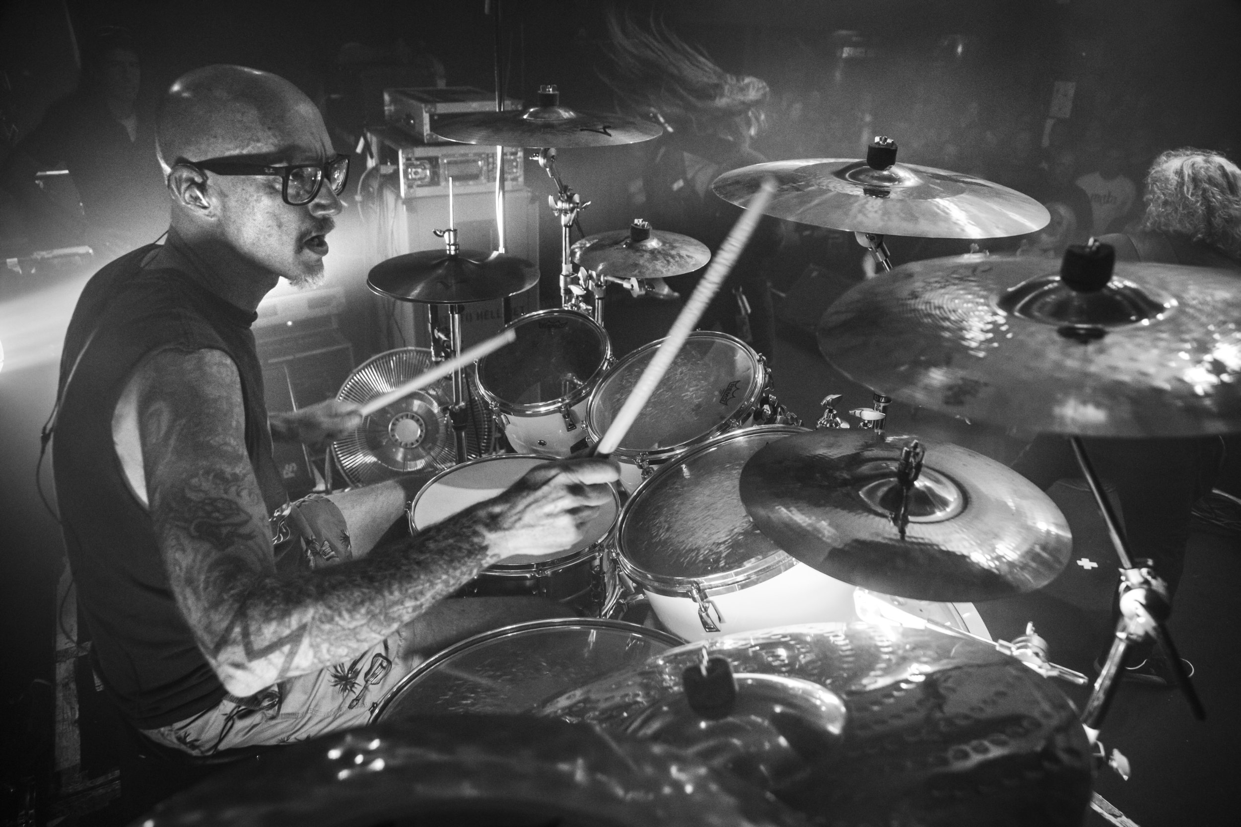 Influenced by such drummers as Tommy Aldridge, Peter Criss and Neil Peart, Dave's hard hitting style blends elements of rock, punk and classic thrash in a way that creates a massive sonic voice behind the kit.