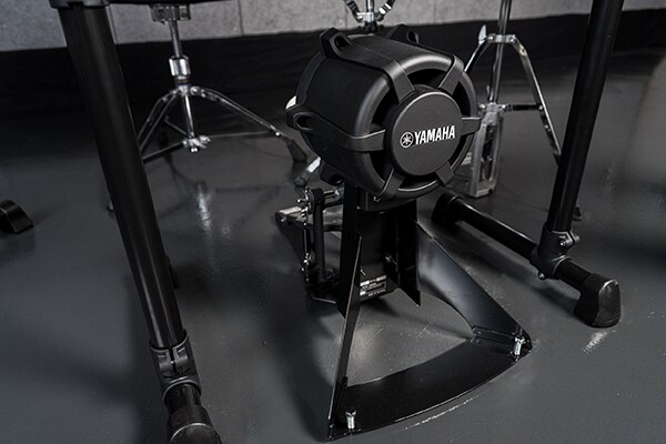 The RS8 rack system uses Yamaha acoustic drum hardware for the tom clamps and cymbal holders that allow for sturdy, highly flexible setups. The left part of the rack is designed so that the hi-hat stand and double foot pedal can be set without obstruction, while the acoustic-look L-shaped legs further improve stability and robustness.