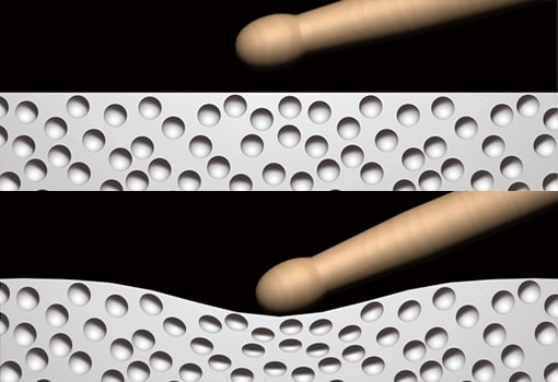 The snare and toms boast a feel very close to their respective acoustic counterparts. Their surfaces will never loosen, no matter how many times they are hit, maintaining the best possible feel at all times.