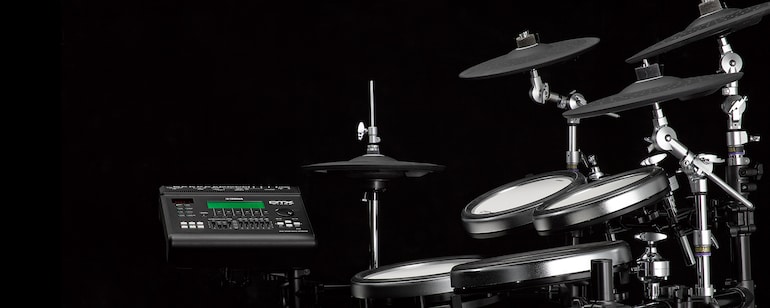 - Uses the vertically mobile RHH135 hi-hat pad. This pad is incredibly quiet, and its pedal has a natural feel. You can control different sounds with the pad and edge areas, and foot splashing is supported. The HS740A hi-hat stand is included.- There are two cymbal pads, the 15-inch PCY155 and the 13-inch PCY135. They both have three zones, the pad, edge, and cup. Each zone produces a different sound. Because sticks bounce and vibrate on these pads in almost the exact same way that they do on real cymbals, you'll get that same feeling that you do playing on an acoustic drum set. Also, you can choke the cymbal pads by grabbing their edges after you hit them.- Uses the KP125W kick pads, which guarantee stable play even when you are using double foot pedals. A protective sheet that covers the entire drum head makes each kick pad powerfully durable.