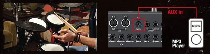 Playing along with songs playing on an audio player such as a CD or portable MP3 player connected to the AUX IN jack is a great way to quickly master the songs you want to play.