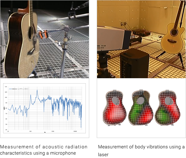 Yamaha possesses cutting-edge acoustic property analysis technology, and utilizes this equipment to perform in-depth analysis of the acoustic characteristics of guitars in order to obtain data that is used in product development.
