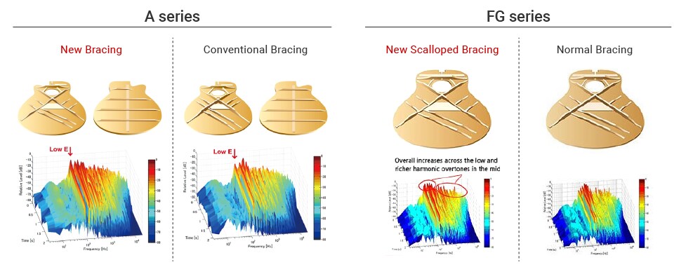 In the development of the new L, FG, A Series and CSF guitars, we used a combination of simulation and real-world measurements, together with many listening tests, to determine the sound, and therefore the construction, of each guitar.