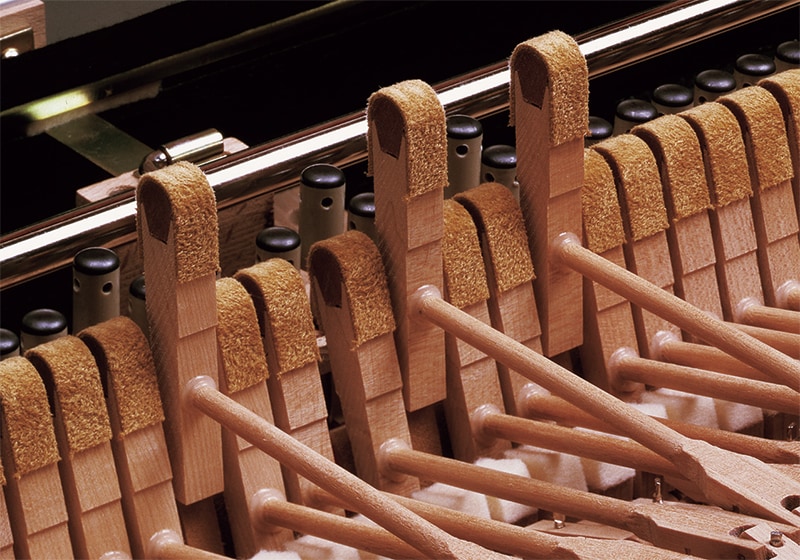 When the keys of a grand piano are played, they cause hammers to move, and these in turn strike strings to produce a sound. Known as the action, this mechanism is the mark of a true piano, and Yamaha designers adopted it as is for the CP70 and CP80. As the fingers could now directly sense the weight of the hammers, this innovation made for a highly realistic playing experience.
