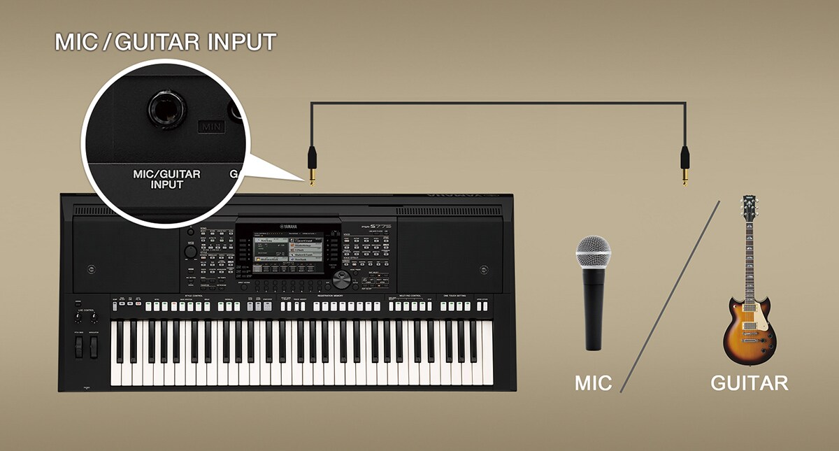 The PSR-S775 comes equipped with a Mic/Guitar input that allows you to add vocals or guitar to your live performance with ease. Simply plug in a microphone and you can effortlessly assign any of the PSR's versatile effects to the vocals. Or, connect a guitar and adjust the parameters to suit your preference and emulate the sound of your favourite artists or create a sound that's all your own!