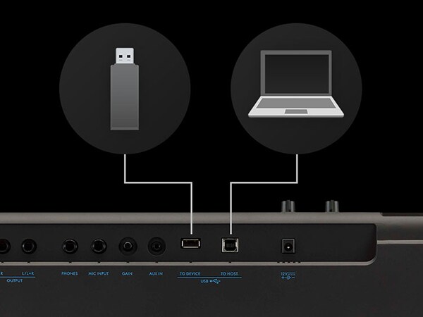 A variety of connectivity options provide all the support you need for practicing, playing, and performing. Plug in a microphone to try your hand at singing while playing, use the Rec'n'Share app to share your music with the world, and hook into PA systems to perform on stage.