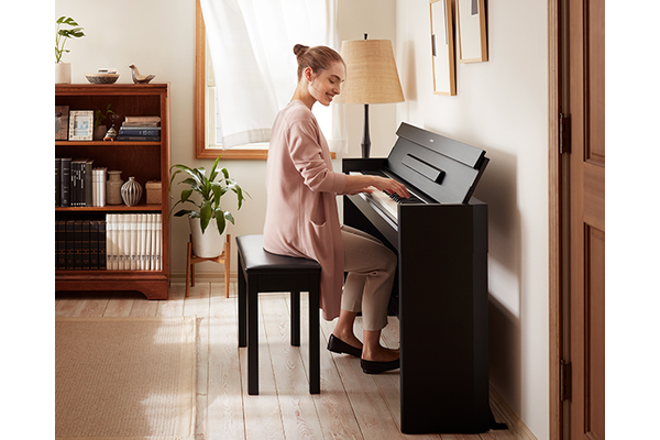 You get all the expressive comfort, tonal quality and special resonance of a grand piano—Moreover, the chic, slim design occupies less room to better fit your living space and match the interior of your home.
