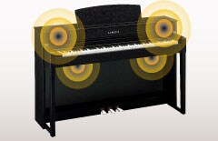 The sound of a Clavinova is calibrated in fine detail, with speaker positioning and body materials checked to ensure that the entire instrument resonates optimally. To create a sound field that is very close to that of a grand piano, the Clavinova features tone escapements in several locations throughout the body that allow the sound from the speakers to be projected to the listener without being trapped inside the instrument.