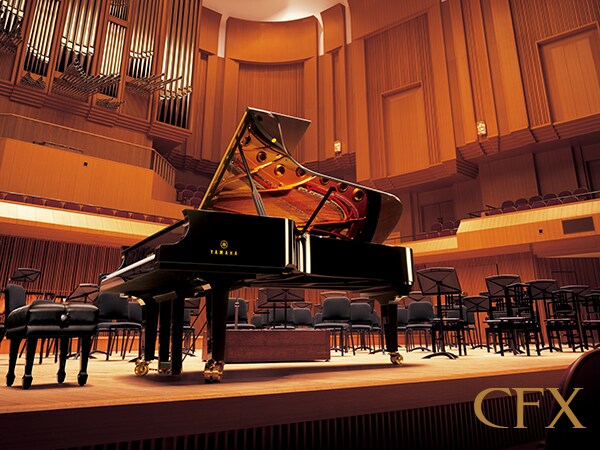 The Yamaha flagship 9’ CFX concert grand piano, offers sparkling highs and a powerful resonant bass combined in a sound that projects to the furthest reaches of any concert hall.