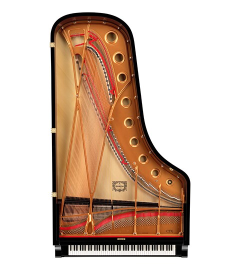 Pentru prima dată la pianele Yamaha cu coadă, pentru concerte, suportul de partitură perforat a devenit standard, permițând artistului să audă sunetul mai aproape de naturalețea lui, în timp ce cântă cu partitura în față. Numărul și forma orificiilor au fost alese cu grijă, pentru maximizarea sunetului.